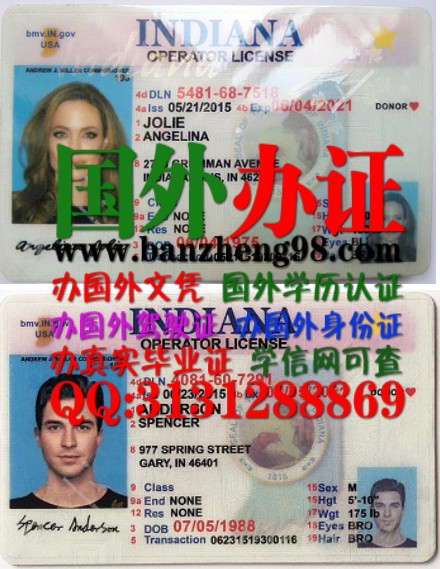 【办证98中心 办美国印第安纳州驾驶证】专业提供:美国印第安纳州驾驶证样本Indiana driver's license