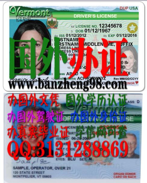 【办证98中心 办美国佛蒙特州驾驶证】专业提供:美国佛蒙特州驾驶证样本Vermont driver's license