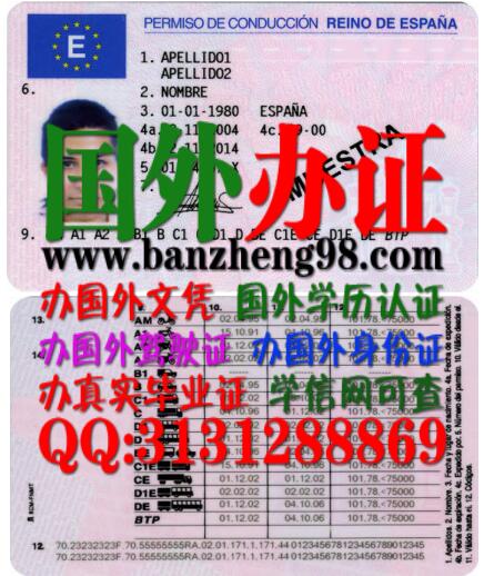 【办证98中心 办西班牙驾驶证】专业提供:西班牙驾照样本Licencia de conducir espaol