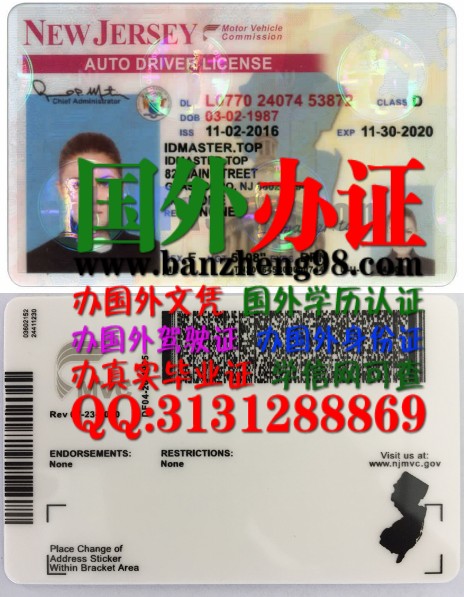 【办证98中心 办美国新泽西州驾驶证】专业提供:美国新泽西州驾照样本New Jersey driver's license