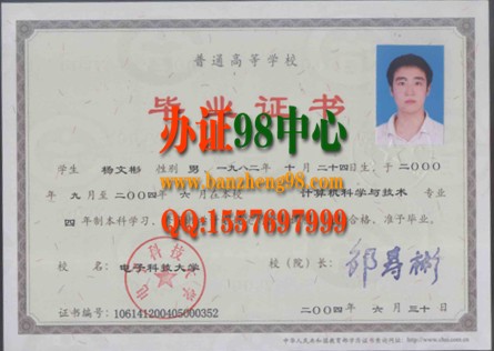 电子科技大学2004年计算机科学与技术本科毕业证样本