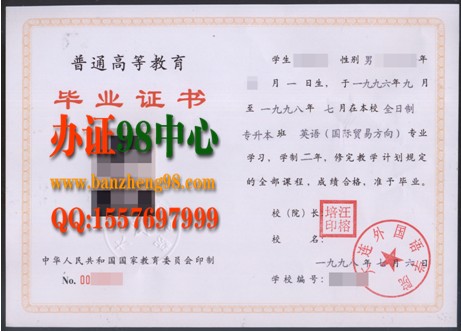 大连办真实毕业证(本科与大专需要多少钱)?在哪里哪里可以办到真实有效本科毕业证?大连办证中心提供大连外国语学院1998年专升本科毕业证样本