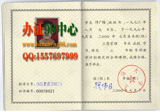 上海办证服务中心提供:上海办老版毕业证|上海大学1999年成教函授专科毕业证样本