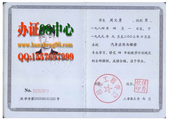 福州办证|福州哪里可以办毕业证|福建工程学校2003年毕业证样本,福建工程学校汽车应用与维修专业毕业证