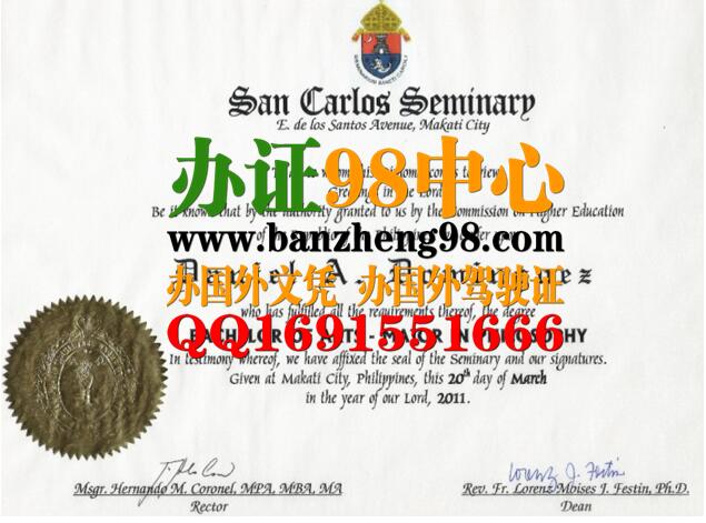 【办证98中心-办国外文凭】专业提供:菲律宾圣卡洛斯神学院文凭样本San Carlos Seminary diploma