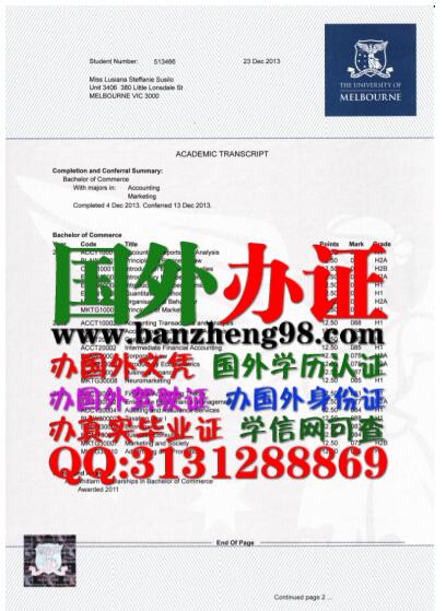 【办澳大利亚墨尔本大学真实成绩单 办澳大利亚成绩单 办理墨尔本大学成绩单】