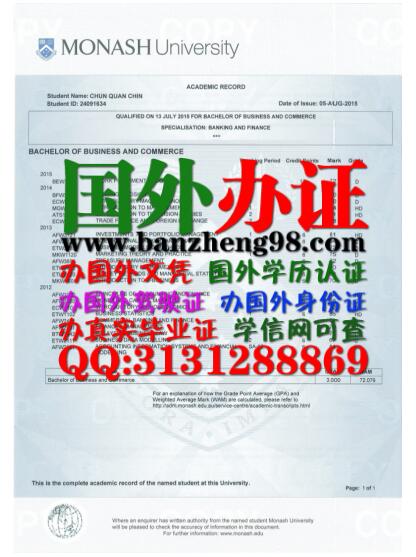 【办证98中心-办澳大利亚成绩单】专业提供:澳大利亚莫纳什大学成绩单样本Monash University transcripts