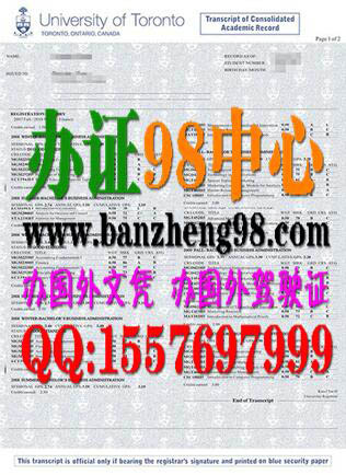 【办证98中心-办加拿大毕业证】专业提供:多伦多大学成绩单样本University of Toronto Transcript