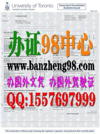 【办证98中心-办加拿大毕业证】专业提供:多伦多大学成绩单样本University of Toronto Transcript