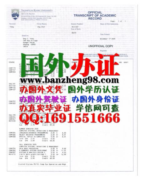【办证98中心-办加拿大成绩单】专业提供:加拿大汤普森河大学成绩单样本Thompson Rivers University transcripts