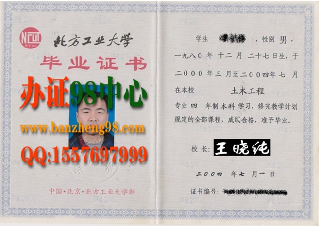 【 办证98中心专业办理提供】 北方工业大学2004年土木工程四年制本科毕业证样本