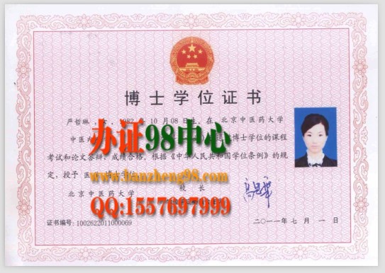 办证98提供:北京中医药大学医学博士学位证样本,本文原创地址: