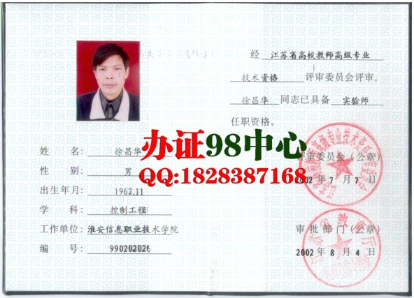【专业办证】 高校教师高级专业技术实验师资格证书样本