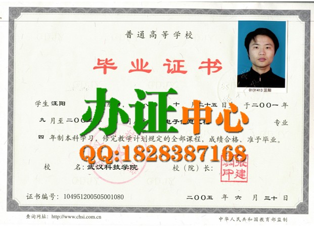 【武汉科技学院2005年电子信息工程专业真实本科毕业证样本——武汉代办中心提供】