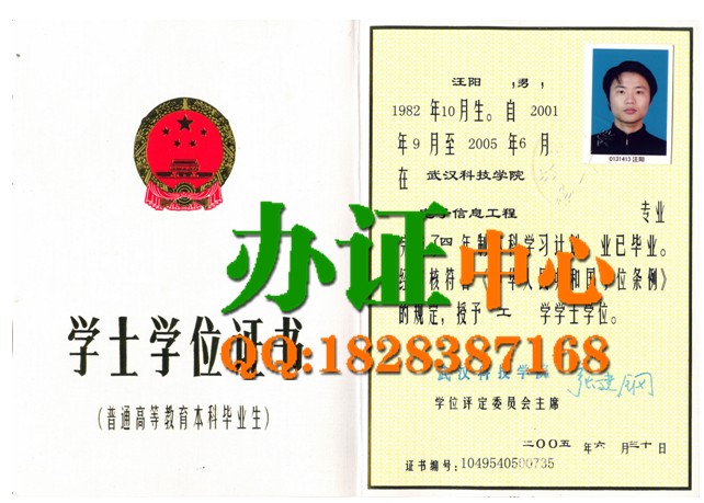 【武汉科技学院2005年真实学位证样本——武汉办证提供】