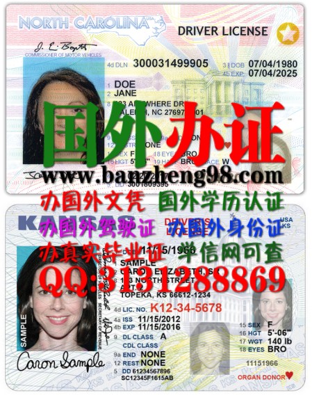 【办证98中心 办美国北卡罗来州驾驶证】专业提供:美国北卡罗来州驾照样本North Carolina driver's license