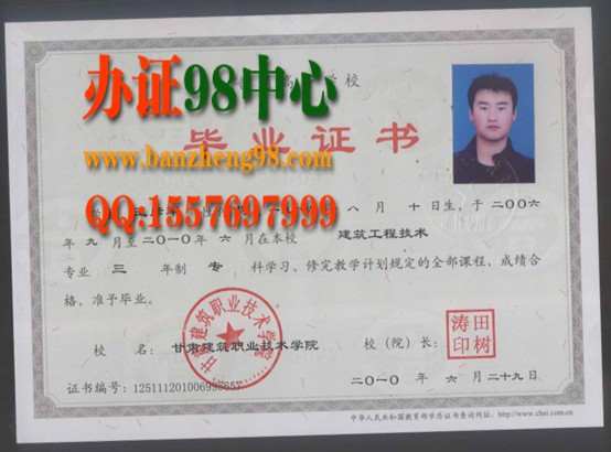 】兰州办证服务站提供:甘肃建筑职业技术学院2010年建筑工程技术三年制专科毕业证样本