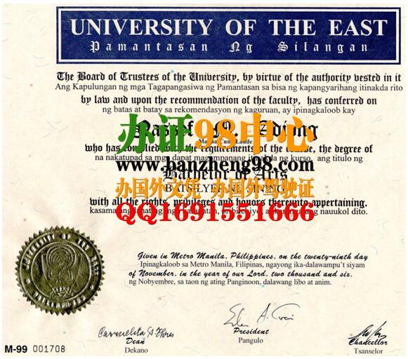办菲律宾东方大学毕业证,菲律宾东方大学毕业证,菲律宾东方大学毕业证样本University of the East diploma,专业为留学生办理毕业证、成绩单、使馆留学回国人员证明、教育部学历学位认证、录取通知书、Offer、在读证明雅思、托福成绩单、网上存档永久可查!