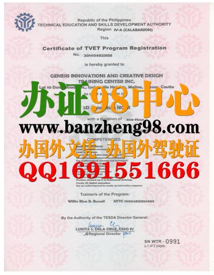 【办证98中心-办菲律宾注册程序证书】专业提供:菲律宾注册程序证书样本Certificate of Program Registration