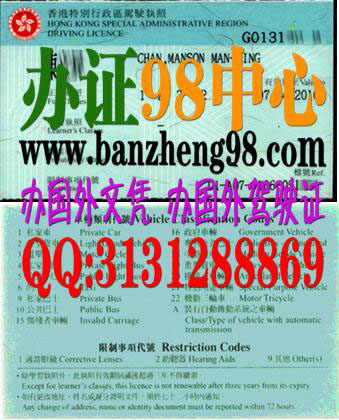 【办证98中心 办香港驾驶证】专业提供:香港驾驶执照样本Hong Kong driver 's license