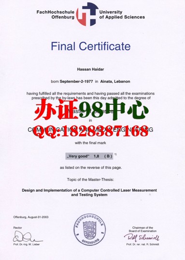 【德国办证】德国办奥芬堡应用技术大学文凭 奥芬堡应用技术大学文凭样本fachhochschule offenburg【德国办证】德国办奥芬堡应用技术大学文凭 奥芬堡应用技术大学文凭样本fachhochschule offenburg奥芬堡应用技术大学是德国的一所公立应用技术大学,该大学成立于1964年。 奥芬堡应用技术大学设有4个学院:电子技术与信息技术学院、媒体与信息学院、机械制造与工艺技术学院、企业经济学与经济工程学院。奥芬堡应用技术大学开设有多个本科和硕士专业,如应用信息学、电子技术与信息技术、企业培训、通讯与媒体设计、信息与经济学、机电一体化、媒体与信息学、媒体与通讯学、机械制造、工艺流程学技术、机械设计、过程设计、能源转换与管理、企业经济学、经济工程学和国际商业顾问等专业。 奥芬堡应用技术大学的优势专业有工程学、媒体学和经济学等。此外,奥芬堡应用技术大学还有成人教育学院,为学生提供三个国际硕士专业:通讯与媒体设计、能源转换与管理和国际商业顾问等,奥芬堡应用技术大学在这些专业上组织并参加了多项国际合作活动,为学生创造了一个国际化的学习平台。
