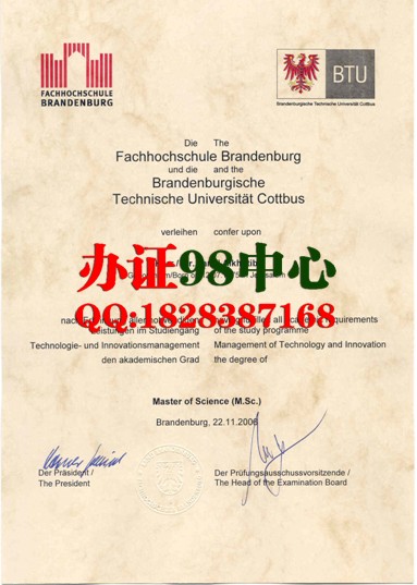 【德国办证】德国办毕业证 德国布兰登堡应用技术大学文凭办理 德国布兰登堡应用技术大学文凭样本 Fachhochschule Brandenburg