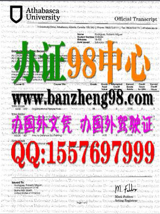 【办证98中心-办加拿大毕业证】专业提供:阿色巴斯卡大学成绩单样本Athabasca University Transcript