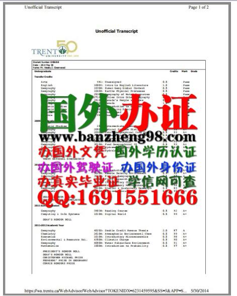【办加拿大特伦特大学真实成绩单 办加拿大成绩单 办理特伦特大学成绩单】
