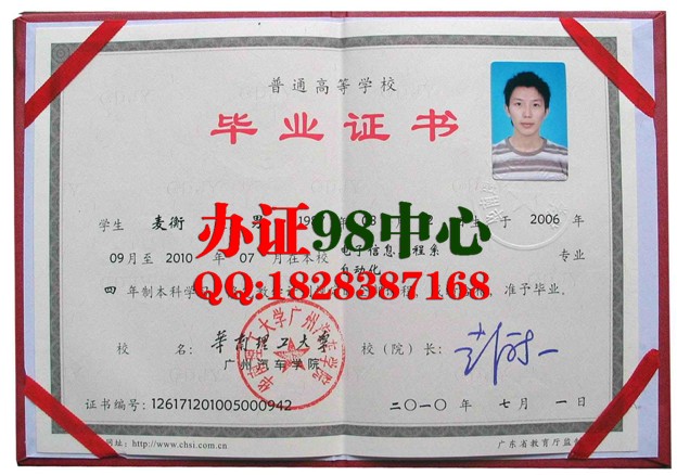办理华南理工大学真实毕业证书,华南理工大学毕业证可以办到真的吗?华南理工大学毕业证学位证哪能办呢?华南理工大学广州学院毕业证办的话有捷径吗?华南理工大学大学广州汽车学院2010年电子信息工程系自动化专业四年制本科毕业证样本