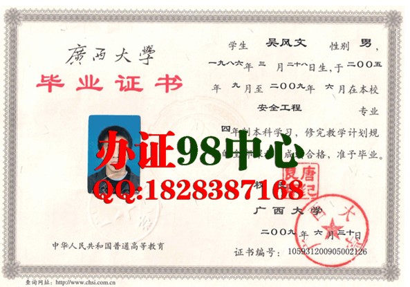 南宁办证提供广西大学2009年安全工程专业四年制本科真实原版毕业证样本