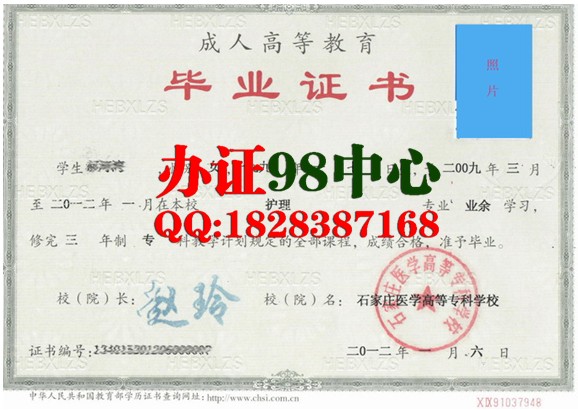 【石家庄办证】石家庄办毕业证 石家庄办成人大专毕业证 石家庄医学高等专科学校成人业余专科毕业证样本