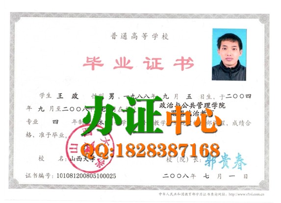 【办证98中心——太原代办服务中心】太原办证 办山西大学2008年真实本科毕业证与学位证