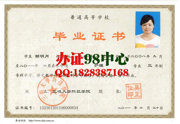 【武汉办证】宜春办证 宜春办毕业证提供三峡大学科技学院大专毕业证样本