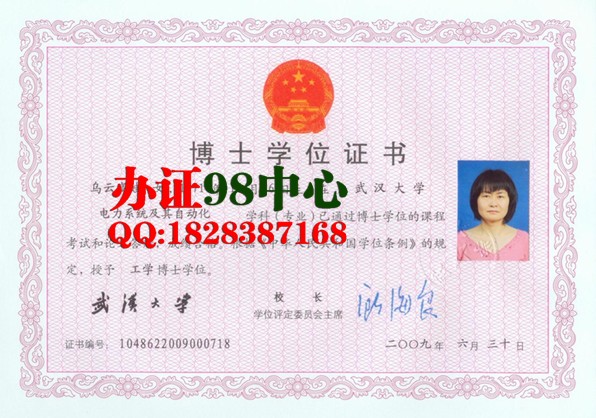 【武汉办证】武汉办工学博士学位证 武汉办电力系统及其自动化博士毕业证 办武汉大学博士毕业证和博士学位证 校长顾海良 武汉大学2009年工学博士学位证与武汉大学2009年博士毕业证样本