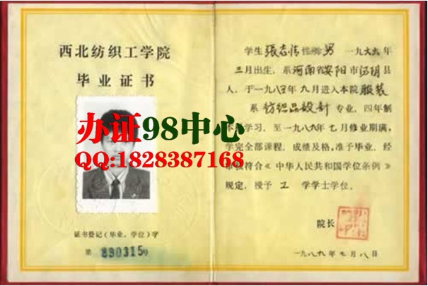 【西安办证】西安办1989年老毕业证 西安办80年代本科毕业证 西安办纺织品设计专业本科毕业证 西北纺织工业学院1989年纺织品设计本科毕业证样本